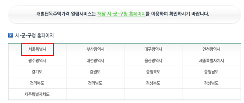 ▼ 다음으로 다가구주택입니다. 메인화면으로 돌아와서 개별단독주택공시가격탭을 클릭합니다.