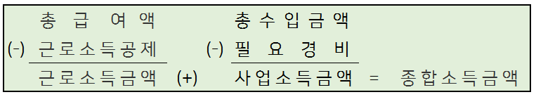 ▶ 종합소득금액의 계산구조(근로소득과 사업소득이 있는 경우)